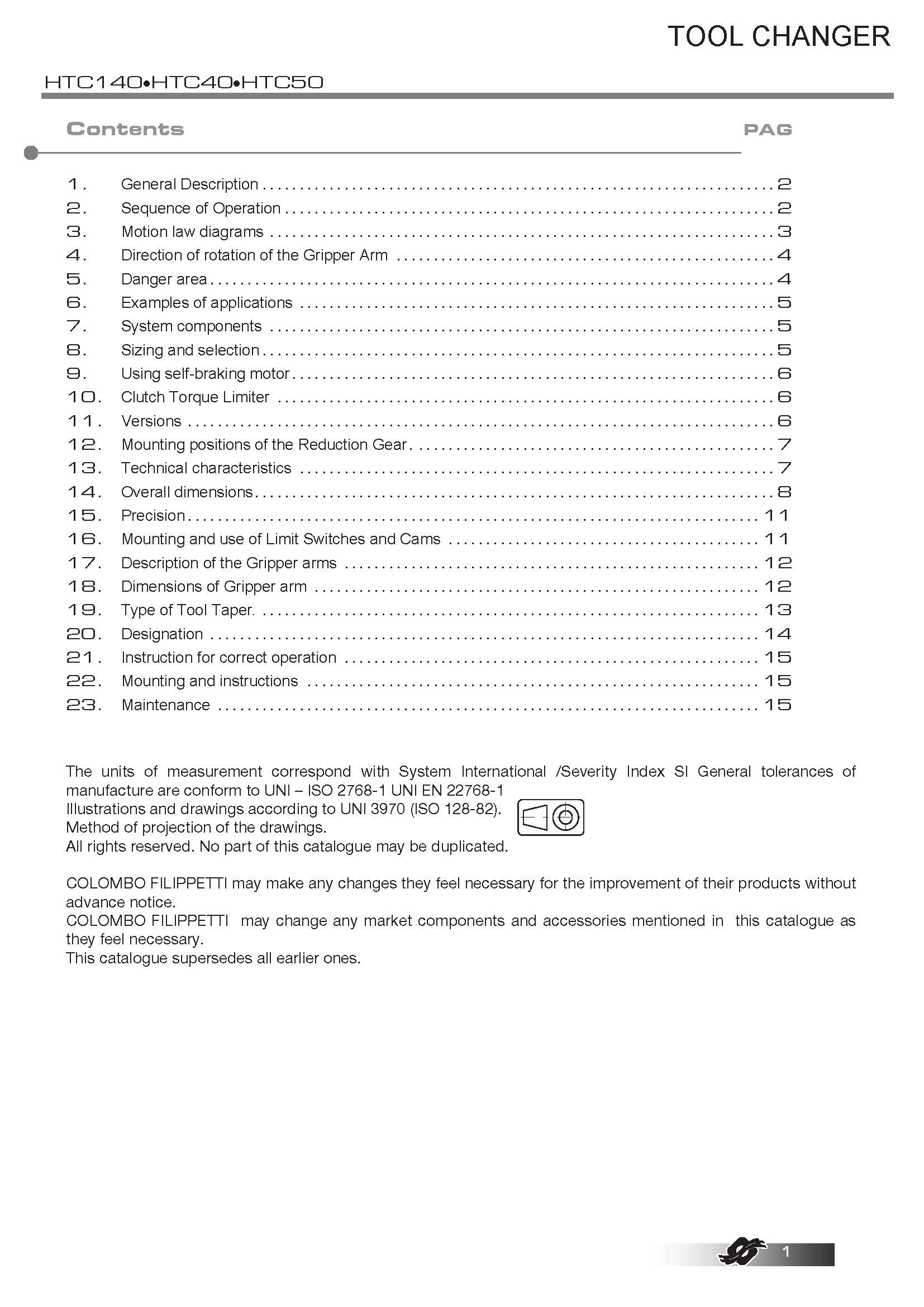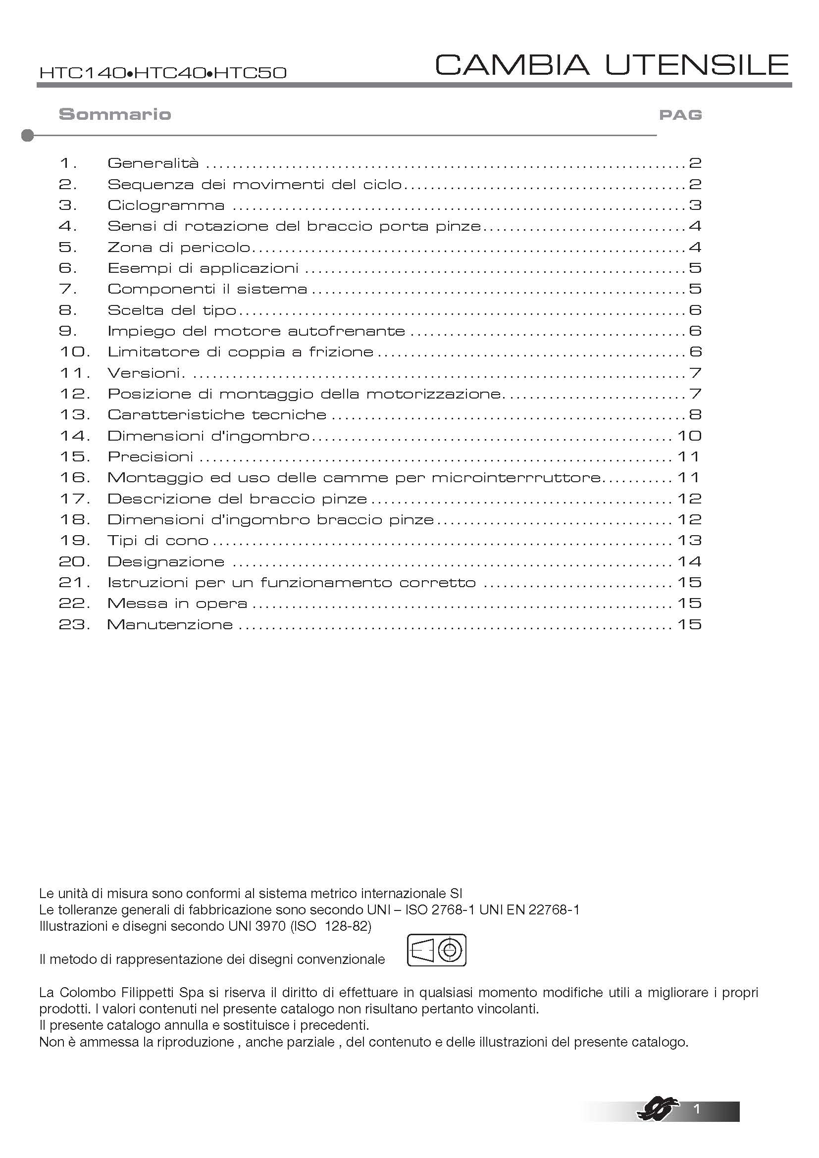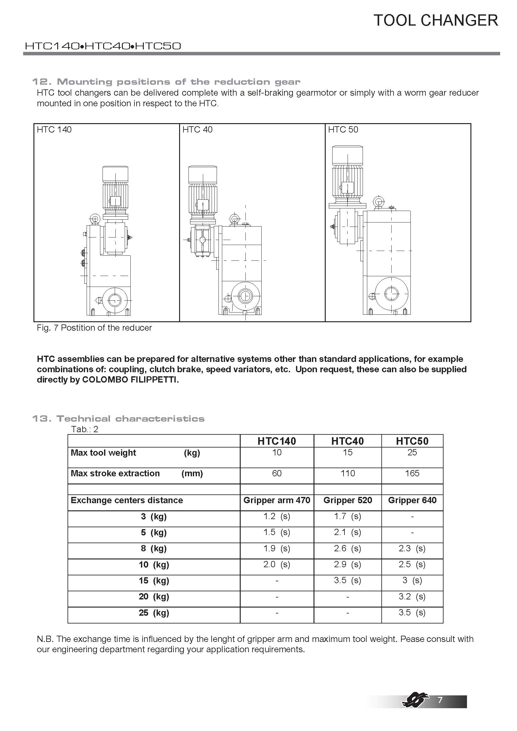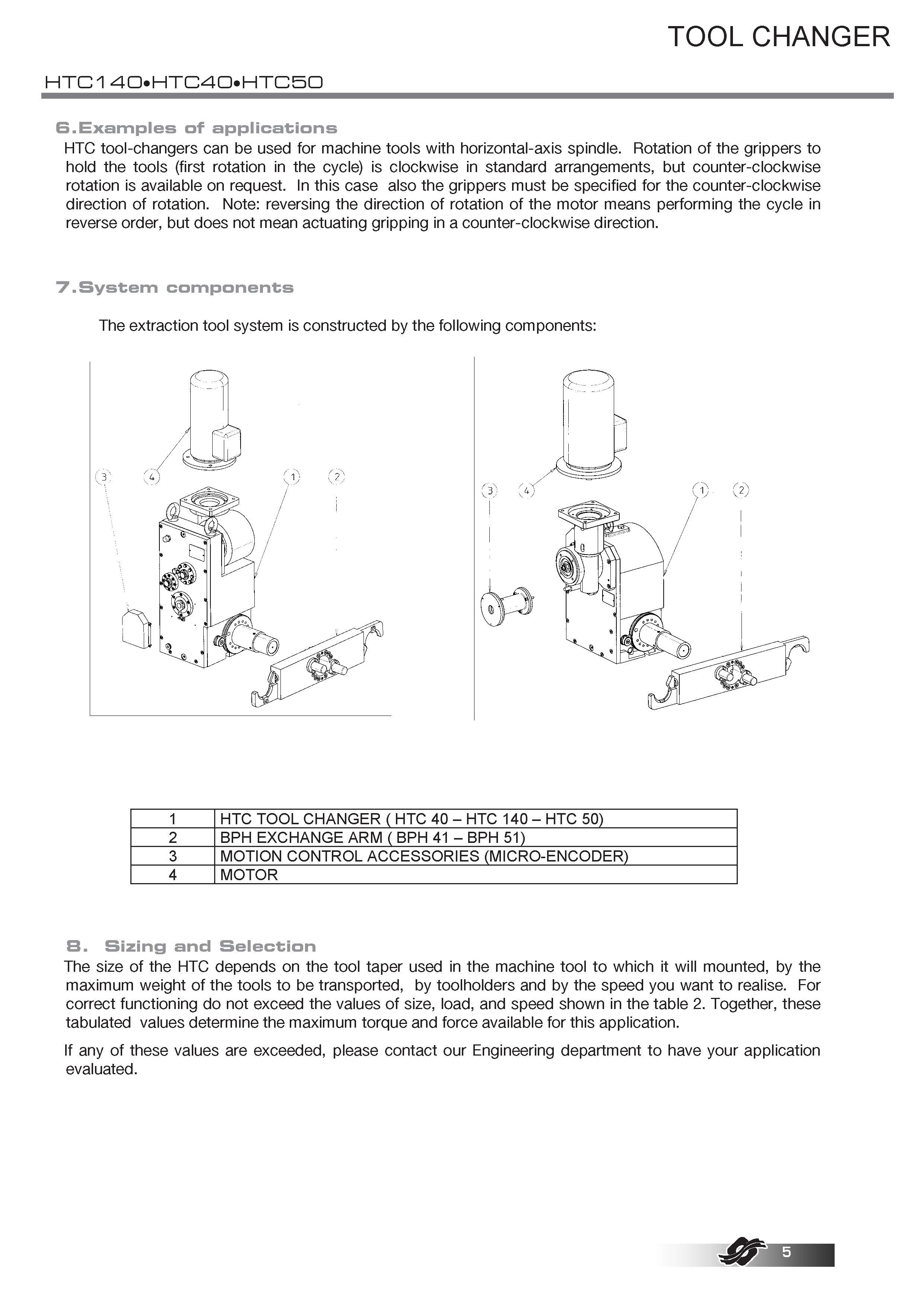 COLOMBO FILIPPETTI spa 的 HTC(臥式換刀裝置)是機械式且完全自主的換刀裝置,它通過凸輪機構將齒輪電機裝置提供的均勻傳入旋轉運動轉換為一系列有序的間歇線性輸出軸的旋轉運動,工具夾具的臂鍵鎖在輸出軸上。